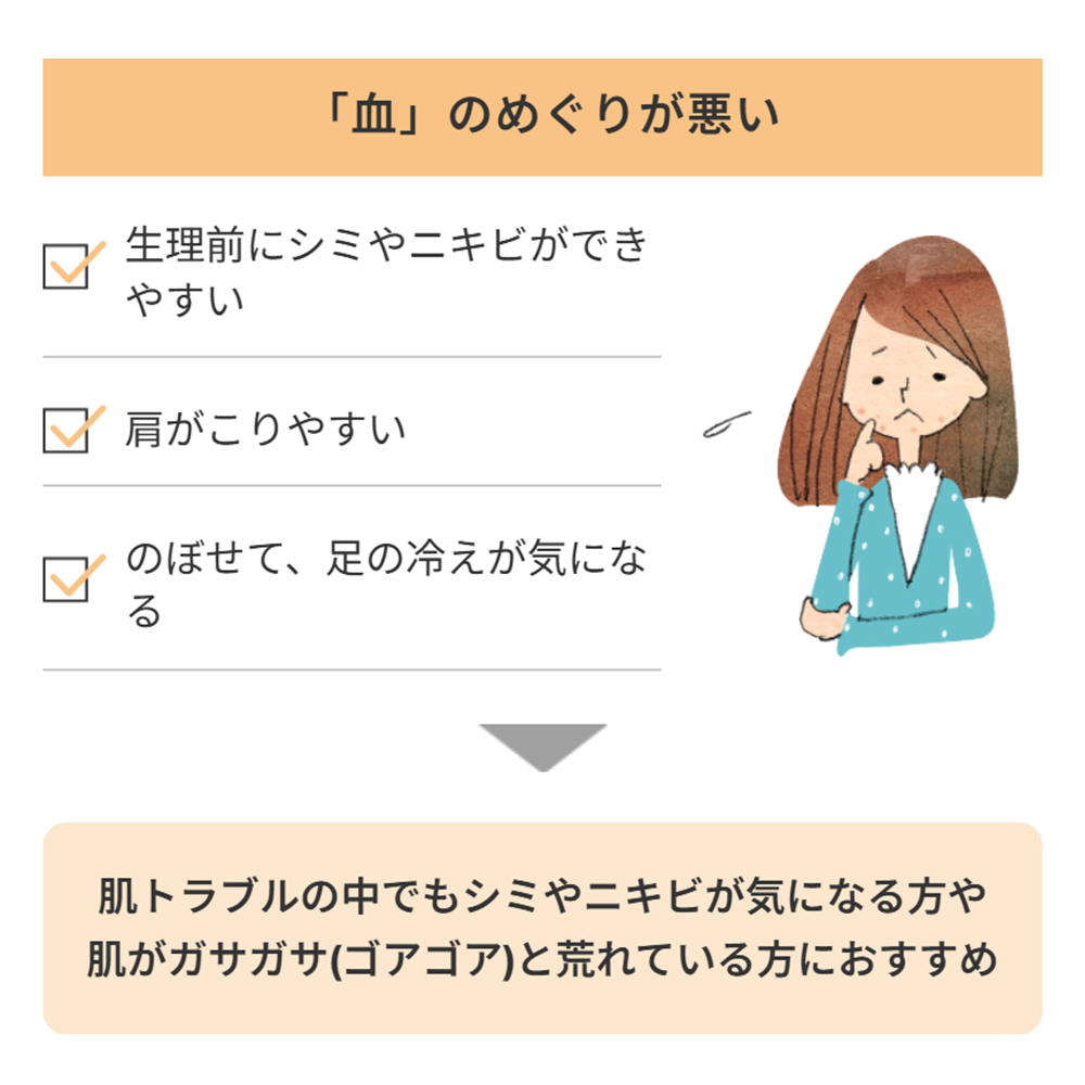 ●のぼせや冷えを伴う月経不順、しみ、にきびなどの症状がある方に