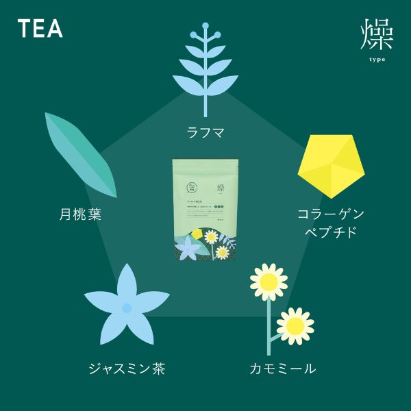 ラフマ(中国産)、ジャスミン茶、カモミール、月桃葉、コラーゲンペプチド |